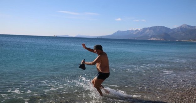 Dün kar yağan Antalya'da bugün deniz keyfi