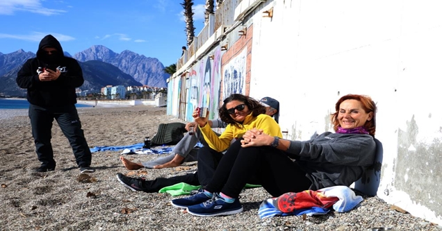Onur Çağlayan, “Burada şimdi bir de rüzgar var, yine de denize girebiliyoruz. Her gün giriyoruz. Dün kar az bir çiseledi ama tutmadı. Poyraz var hava soğuk ama deniz çok güzel. Sürekli denize giriyoruz. Hava soğuk ama üşümüyorum. Cennet gibi bir yer Antalya, herkes gelsin denize girsin” dedi.