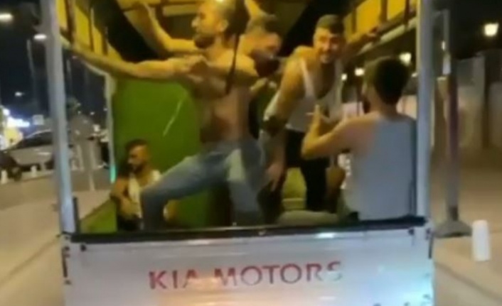Olay, Konyaaltı ilçesi Akdeniz Bulvarı üzerinde gece saatlerinde yaşandı. Vatandaşların cep telefonlarına yansıyan görüntülerde kamyonet üzerinde bulunan 5 kişi, eğlencenin dozunu kaçırarak kendilerinden geçti. Kamyonet seyir halinde iken kasasının üzerinde farklı türlerde müzik eşliğinde dans eden gençler, adeta tehlikeye davetiye çıkardı. Zaman zaman ayakta durmakta zorlanan gençler, kasanın demirlerine tutunarak durabildi. Gençler bir süre daha davranışlarına devam ettikten sonra gözlerden kayboldu.