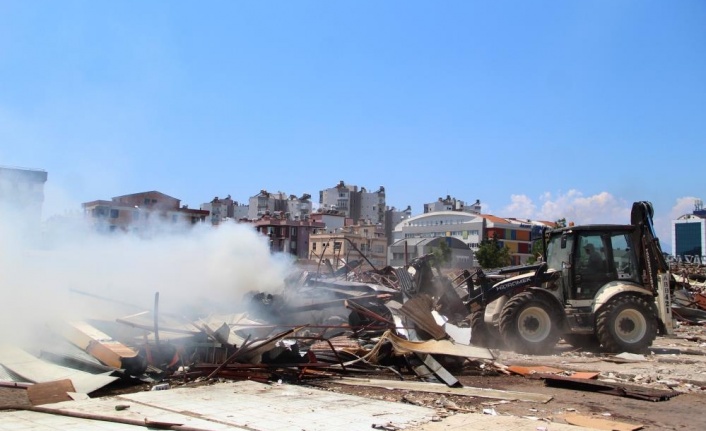 Antalya’da eski festival çarşısının sökülen atık malzemelerinde çıkan yangın korkuttu.