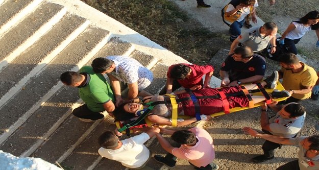 İtfaiye ve sağlık ekipleri tarafından ilk müdahalesi olay yerinde yapılan kız, sedye ile elden ele taşınarak ambulansa ulaştırıldı.