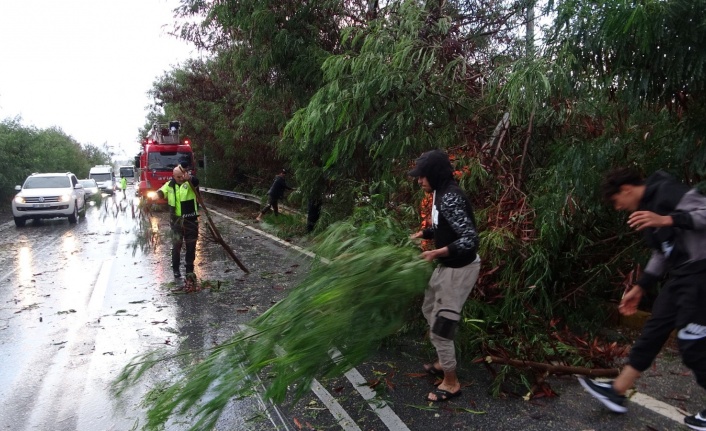 Antalya'nın Manavgat ilçesinde fırtına ve yağmur nedeniyle kırılarak yola düşen ağaç nedeniyle trafik aksadı. Jandarma ve itfaiye ekiplerinin çalışması sonucunda trafik akışı normale döndü.