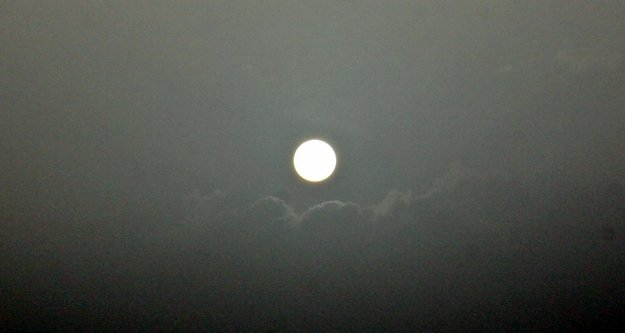 Fırtına sonrası kenti karartan bulutların arasından çıkan güneşin görüntüsü dolunayı andırdı.
