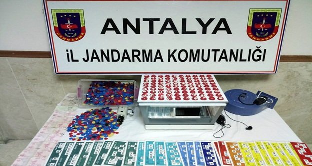 Manavgat'ın Side Mahallesinde bir apartmanın zemin katında kumar oynatıldığı ihbarını alan ve evde arama yapan Side Jandarma Karakolu ekipleri C.Ç. isimli şahsın kumar oynattığını belirledi. Evde yapılan aramada 13 adet masa ve üzerlerinde değişik renklerde tombala kartları, 1’den 90’a kadar rakamların bulunduğu toplar, topları üfleme motoru, kamera ve 120 TL para ele geçirildi. C.Ç hakkında kumar için yer sağlama suçundan işlem yapılırken 23 kişiye de kumar oynamak suçundan para cezası uygulandı.