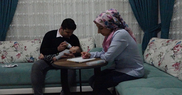 Genç annenin üniversitede okumasında en büyük destekçisi olan eşi Bayram Şimşek, "Ben tavukçuda çalışıyorum. Askerden geldim evlenmeyi planlıyordum. Ailelerimiz konuşmuştu ilk önce mantık evliliği gibi olmuştu. İkimizde birbirimizin dürüstlüğünü sevdik. Daha sonra nişan olmamıştı. Bir süre böyle devam etti söz gibi. Ama ikimiz de birbirimizi sevdik. Güzel de oldu. İstemeye gittik. Eşimin normalde hemşire diploması da var. Babalığım bana ataması çıksa istediği yere gider misin diye sordu. Ben de tamamen sonuna kadar, tayini doğuya çıksa, batıya da çıksa eşimle beraber gitmeye karar verdiğimi söyledi. Ama atamamız olmadı. Bir müddet böyle devam ettik. Hatta daha önce bir kızımız oldu. Kızımız 16 gün yaşayabildi, vefat etti. Onun ardından oğlumuz Ramazan Efe oldu. Allah’a bin şükürler olsun sağlığı yerinde. Doktorların iki yılda olması gerekir dediği halde, 6 ayda doğdu, çok şükür mutluyuz. Bayağı zorluklar atlattık ama eşim de ben de birbirimize destek çıkarak, daha güzel daha mutlu olduk" dedi.
