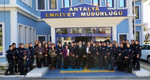 İl Emniyet Müdürü Mehmet Murat Ulucan, '8 Mart Dünya Kadınlar Günü' münasebetiyle, Antalya Emniyet Müdürlüğünde görevli kadın polislere çiçek vererek Dünya Kadınlar Günü'nü kutladı.