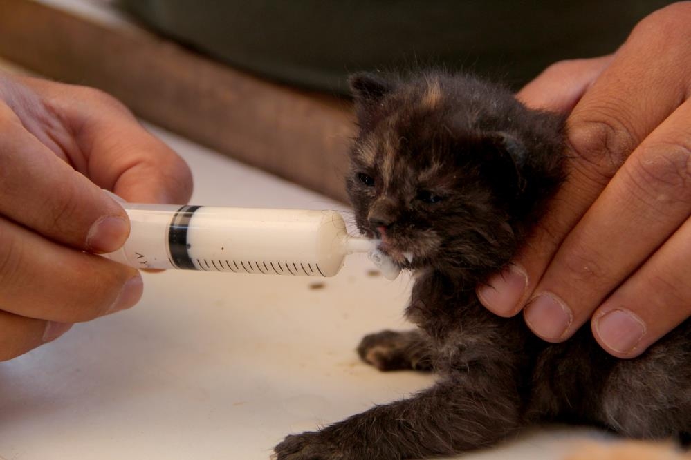 süt alıp önce biberonla beslemeye çalıştı. Kedilerin sütü içmemesi üzerine başka bir yol deneyen Semih Yeşilağaç, iğnesini çıkardığı enjektör yardımıyla yavruların beslemesini yapmayı başardı. Yeşilağaç, belirli aralıklarla hesap tuttuğu masanın üzerine çıkardığı yavru kedileri tek tek elleriyle besliyor. Çalıştıkları alanın neşe kaynağı olan kedileri beslemek için ise tüm çalışanlar seferber oluyor.