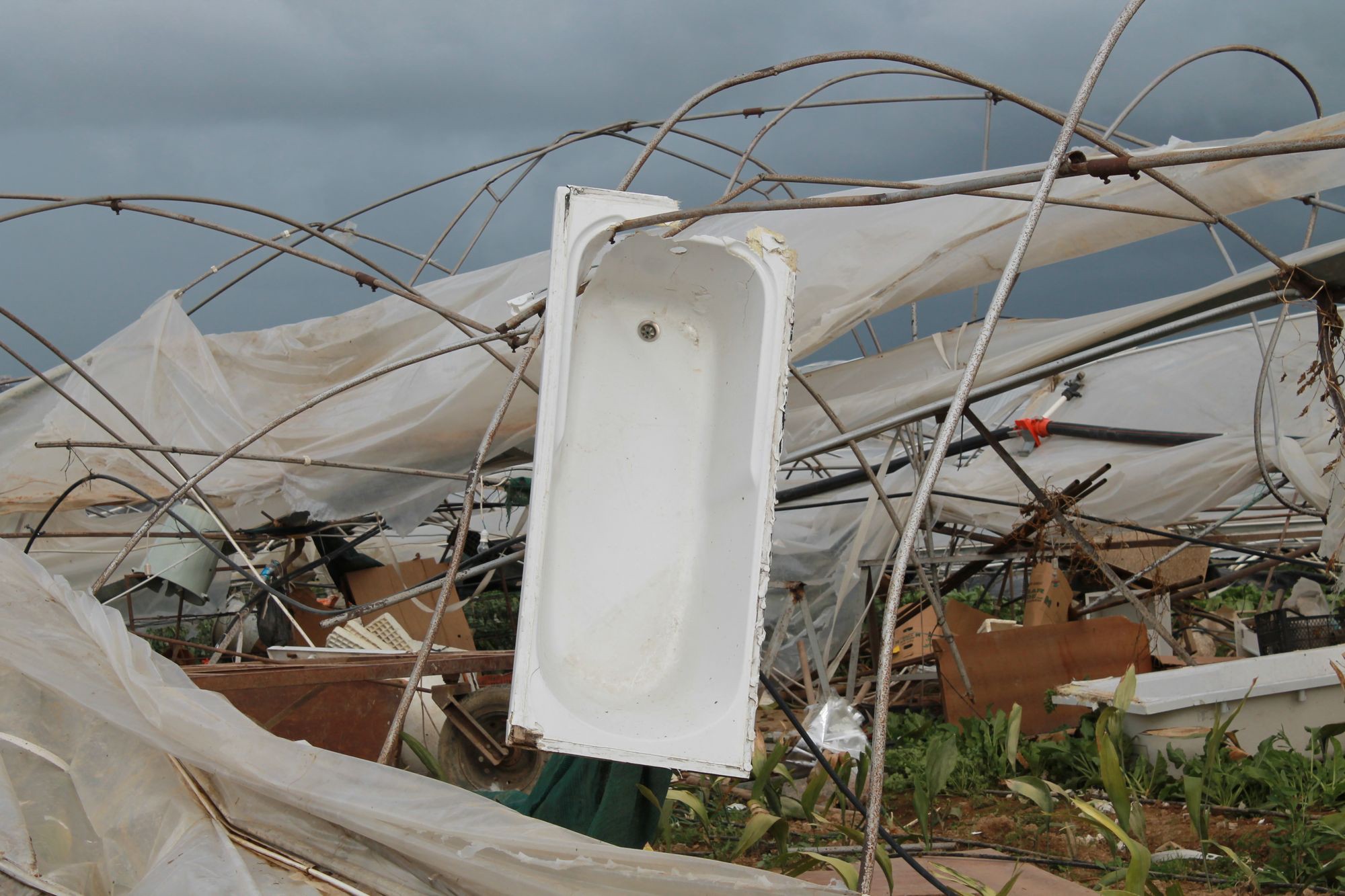Hortumun çıkışını evinden gördüğünü belirten sera sahibi Mustafa Taşkıran “Birden hurdacıların üzerinden bize doğru gelen toz bulutunu gördüm. Evimizin yanından geçip seraya ulaştığında sera demirlerinin havada uçuştuğunu, seranın yanında bulunan makine ve ekipmanların uçtuğunu gördüm. Görüldüğü gibi 10 dönümlük seranın 1 dönümü dışında tamamı zarar gördü. Zararımız 100 bin liranın üzerinde. Sigortamız olmadığı için ne yapacağımızı bilemiyorum. Kaymakamlıktan, Tarım ilçeden yetkililer gelip zarar tespiti yapılacak deniyor. Ama bundan da bir şey çıkacağını sanmıyorum” dedi.