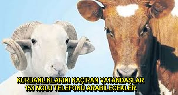 Büyükşehir Belediyesi bayramda kaçan firari kurbanlıklar için bayrama özel ‘Hayvan Yakalama Timi’ hizmet verecek. Kurbanlıklarını elinden kaçıran vatandaşlar 153 nolu telefondan yardım isteyebilecek.