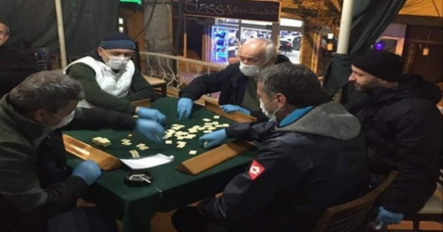 Kahvehanede okey oynayan vatandaşlar, ıstaka ve okey taşlarına dokunmamak için eldiven giydi. Hava ile temas etmemek için de maske taktılar. Ortaya da ilginç görüntüler çıktı.