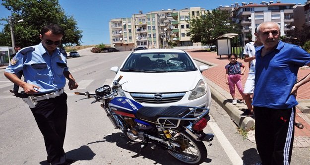 Olay, Manavgat’ın Aydınevler Mahallesi 5546 sokakta meydana geldi. Yol kenarında park halindeki Hüsamettin Yıldız’a ait 07 LFN 99 plakalı otomobile, sürücüsün belirlenemeyen plakasız motosiklet çarptı. Bir görgü şahidi, motosikleti kullanan sürücünün arkasında bir kişinin daha bulunduğunu belirterek, "Çarpmanın şiddetiyle motosikleti kullanan sürücü fırlayıp otomobilin ön camına kafasını çarptı. Daha sonra yaralı halde ayağa kalkarak diğer arkadaşıyla birlikte motosikleti olay yerinde bırakıp, uzaklaştı" dedi.