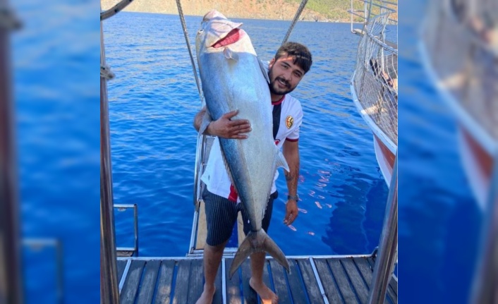 Antalya’da tekneyle balık avına çıkan genç, oltayla 42 kiloluk akya balığı yakaladı. Misinayı çekerken ‘Oha, rekor’ diyerek heyecanlanan genç, tekneye aldığı balığı kaldırıp öptü.