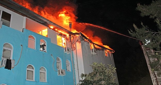Antalya Büyükşehir İtfaiyesi Kemer birimi arazözlerinin ilk müdahalesine rağmen büyüyen alevler binayı sararken, çevredeki evlerde oturan vatandaşlar endişe içinde söndürme çalışmalarını izledi. Yangının ağaçlara sıçraması ihtimaline karşı yakında bulunan Çamyuva Jandarma Karakolu ve evler her an boşaltılmaya hazır bekledi.