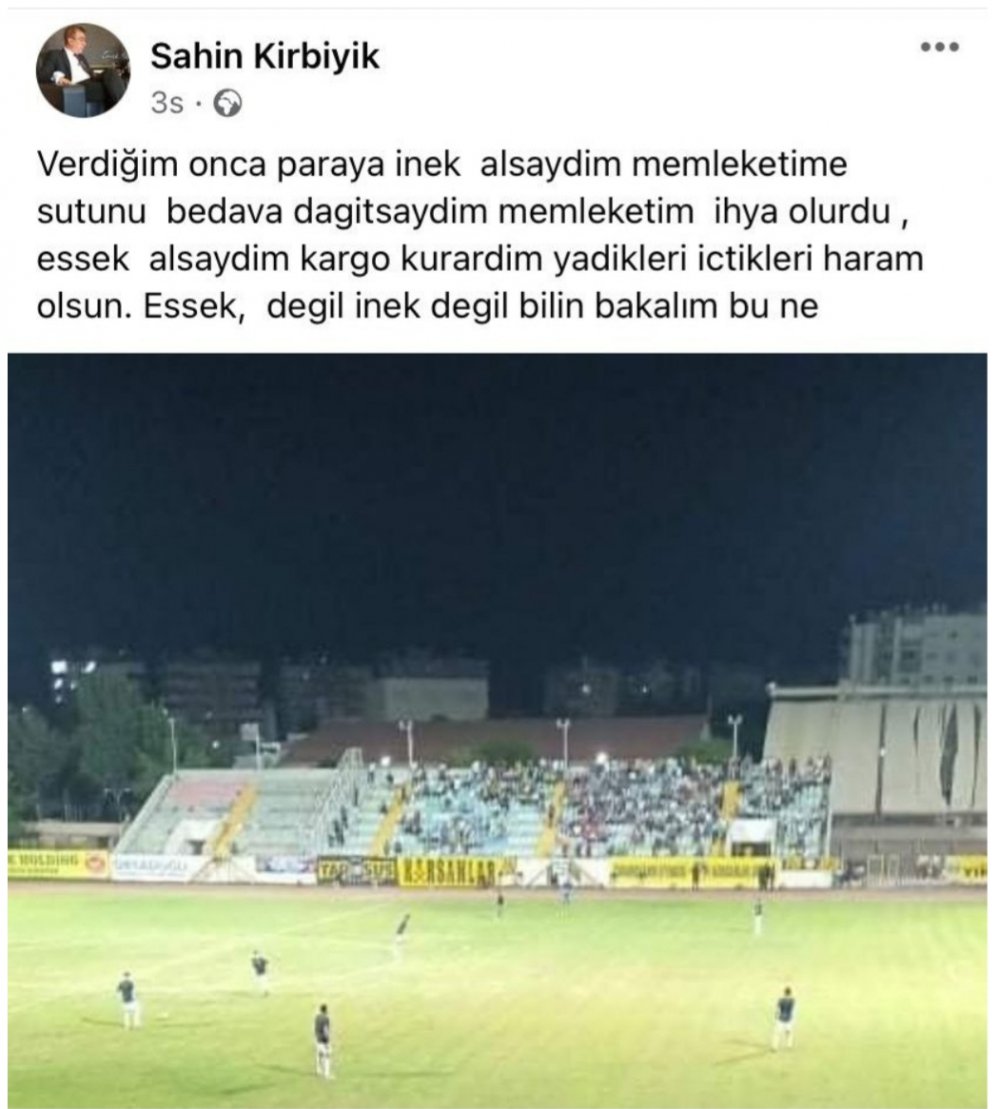 Tarsus İdman Yurdu Başkanı Şahin Kırbıyık, takımının 1-1 berabere kaldığı Uşakspor maçı sonrasında çileden çıktı ve sosyal medya hesabından futbolcularına yönelik hakarete varan sözlerin yer aldığı bir paylaşım yaptı.
