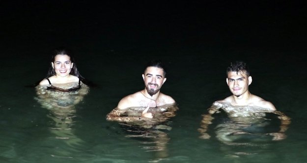 Arkadaşlarıyla birlikte deniz keyfi yaşayan Meryem Akan ise "Gece denize girmenin tadı çok başka oluyor. Gündüz çok kalabalık ama gece sakin ve huzurlu. Soğuk değil ve daha ılık oluyor su" diye konuştu.