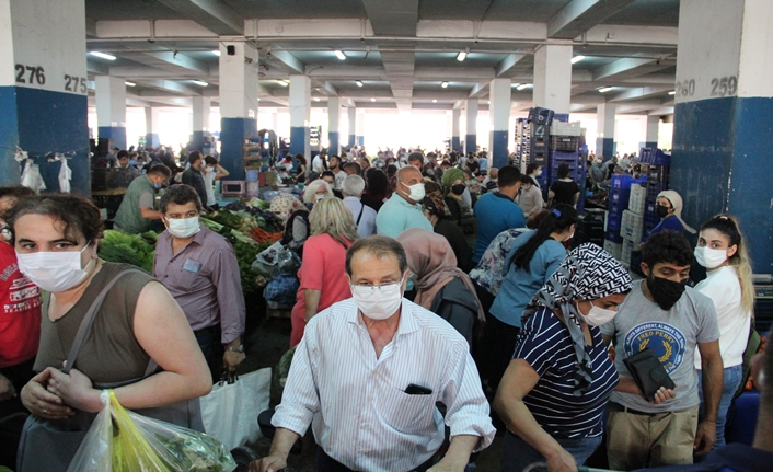 Yeni tip Korona virüs(Covid-19) vaka sayısındaki artışın durdurulması amacıyla ülke genelinde 29 Nisan'dan 17 Mayıs'a kadar sürecek 'tam kapanma' öncesi Antalya'da vatandaşlar semt pazarlarına akın etti. Muratpaşa ilçesi Cumhuriyet Mahallesi’ndeki kapalı çarşamba pazarındaki görüntüler tedirgin etti. Belediye ekiplerinin kontrolü sağlamak için çektiği demir bariyerlerin ise bir süre sonra fayda etmediği görüldü. Pazarın hem içinde hem de dışında araç ve yaya yoğunluğu dikkat çekti. Tüm uyarı ve bilgilendirmelere rağmen pazarcı esnafının ya maske takmadığı, takanların ise çenelerinin altında hatalı taktığı gözlemlendi. Sosyal mesafenin sıfır olduğu pazarda vatandaşların tezgahlar önünde birbirlerine çarparak geçtikleri görüldü. Zabıta ekipleri, pazar esnafı ve vatandaşları maske ve mesafeye uymaları noktasında uyarılar yapsa da aşırı kalabalık nedeniyle bir mesafe alamadığı gözlemlendi. Pazarda yaklaşık 10 binin üzerinde kişinin olduğu öğrenildi.