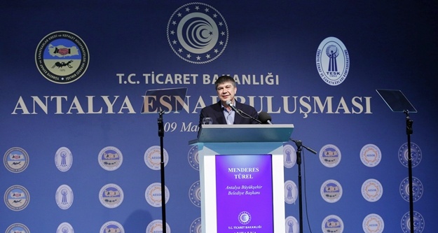 Antalya Büyükşehir Belediye Başkanı Menderes Türel, Cam Piramit’te Dışişleri Bakanı Mevlüt Çavuşoğlu ve Ticaret Bakanı Ruhsar Pekcan’ın katılımı gerçekleşen esnaf buluşmasında konuştu. Esnafın karşısına seçimden seçime çıkan bir belediye başkanı olmadığını söyleyen Türel, “Her sene esnaf odalarıyla çalıştaylar yaptık. Sorunları konuştuk ve esnafımıza nasıl destek veririz onlar için gayret ettik. Siz benim çalışmamı, gayretimi en iyi bilmesi gereken şahitlerimsiniz. Yaptığım ve yapacağım projelerin çoğu Antalya ticareti, turizmi içindir yani sizler içindir. Bu seçimler benim olduğu kadar ziyadesiyle hatta daha fazla sizin seçiminizdir. Bu sebeple her birinizden ayrı ayrı destek istiyorum. Helallik istiyorum. Bu seçim Antalya’ya hizmet seçimidir” dedi.