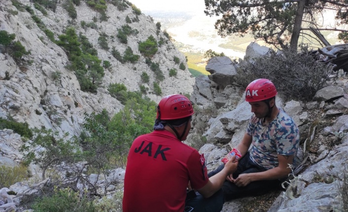 Antalya’da uçurumun kenarında mahsur kalan bir kişi, toplam 13 personelle 4 ekip tarafından 6 saatlik nefes kesen operasyon sonucu kurtarıldı.