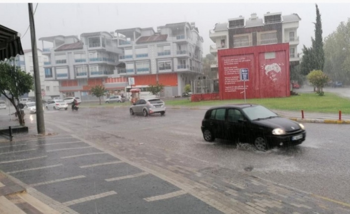 Manavgat’ta 10. gün sonunda kontrol altına alınan orman yangınlarından sonra gelen sağanak yağış, doğal soğutma çalışması etkisi yaptı. 15 dakika süren sağanak yağış tüm ilçeyi etkisi altına alırken, yoğun yağıştan dolayı araç trafiğinde aksamalar yaşadı.