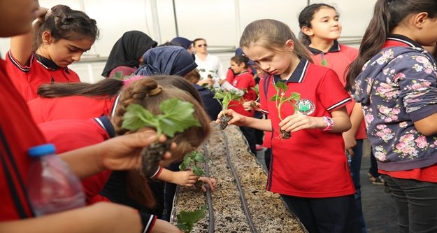 Daha sonra tıbbi ve aromatik bitki serasına götürülen öğrencilere lavanta, kekik, defne ve adaçayı gibi bitkiler tanıtıldıktan sonra, yaşayan bitkiler gösterildi ve daha sonra açık alanda öğrenciler tarafından lavanta dikimi gerçekleştirildi.Buradan EXPO alanında BATEM reyonuna giden öğrenciler turunçgil yetiştiriciliği hakkında bilgi alıp, turunçgil ağaçlarını canlı olarak tanıdıktan sonra birlikte Greyfurt fidanı diktiler.