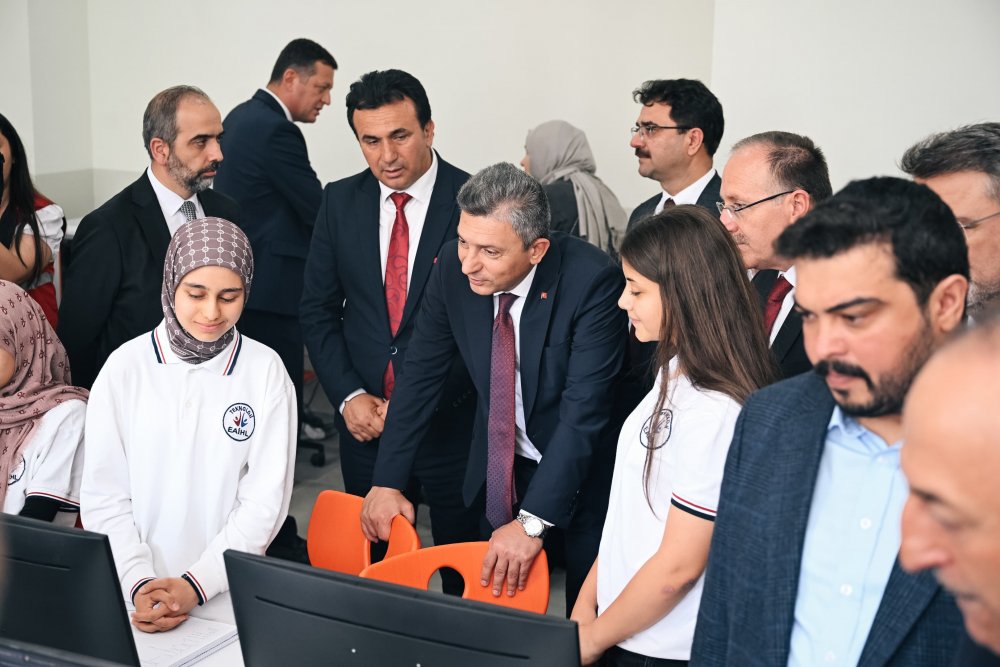 Konuşmasının ardından Vali Hulusi Şahin, Emine Ahmet Uysal Teknoloji Anadolu İmam Hatip Lisesi ve Ortaokulu’nun inşasına sağladığı katkılardan dolayı hayırsever Mevlüt Uysal’a plaket takdim etti. Daha sonra katılımcılarla birlikte açılış kurdelesini kesen Vali Şahin, sınıfları gezerek okulun bağımsız bölümlerini inceledi.