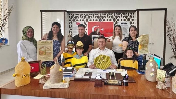 “Arı Yoksa Hayat Yok ” sloganıyla yürütülen proje kapsamında öğrenciler ve öğretmenler, Alanya Milli Eğitim Müdürü Yusuf Yılmaz’ı makamında ziyaret ederek projelerini tanıttılar.