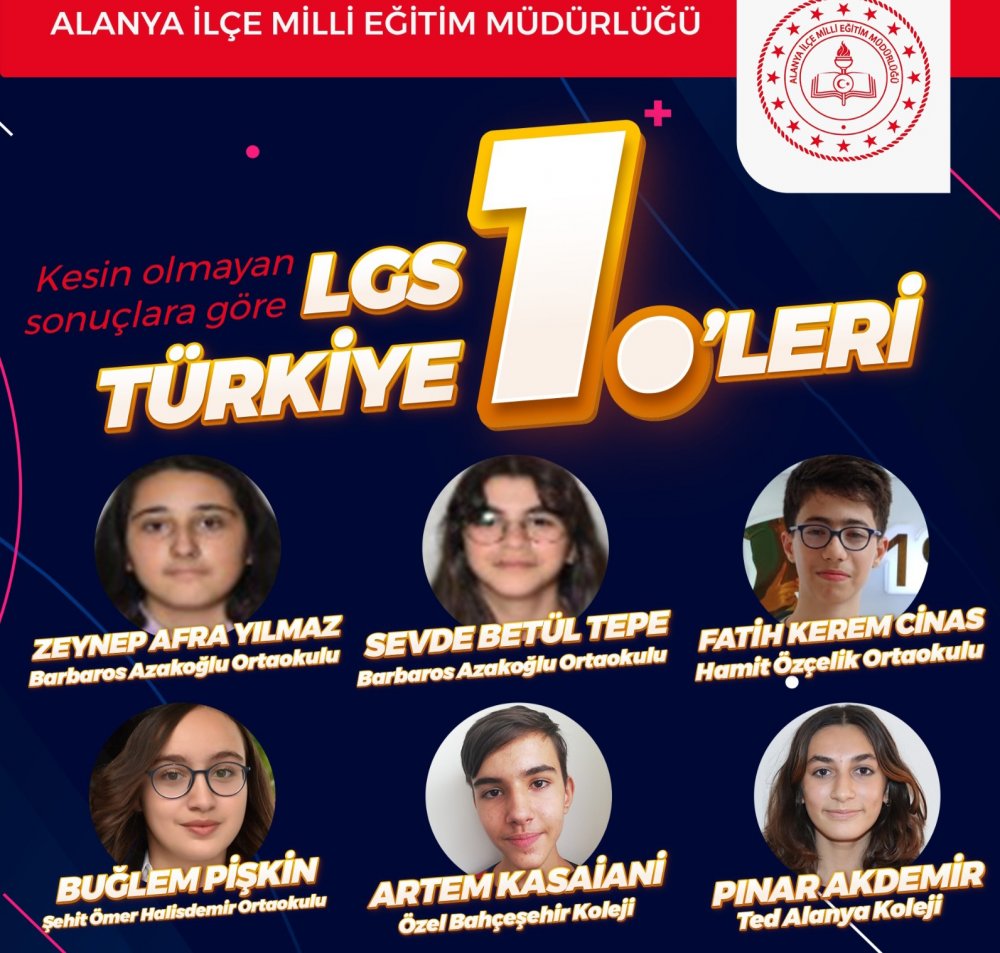 Kesin olmayan sonuçlara göre; Alanya'da 5 farklı okuldan 6 öğrenci tüm soruları doğru cevaplayarak Türkiye 1.si oldu. Bir yanlış yaparak veya bir boş bırakarak şampiyonluğu kıl payı kaçıran öğrencilerinde olduğu öğrenildi. Alanya Milli Eğitim Müdürü Yusuf Yılmaz yaptığı açıklamada şu ifadelere yer verdi: