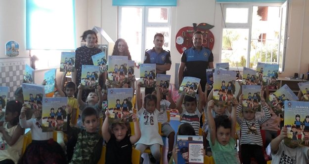 Alanya İlçe Emniyet Müdürlüğü Toplum Destekli Polislik Büro Amirliği başlatılan "Öğrencilerle Bir Ders Saati Projesi" kapsamında Alanya Anaokulunda 200 öğrenciye seviyelerine uygun polislik mesleğinin tanıtımı, güvenlik ve trafik kuralları konularında bilgilendirme semineri verdiler. Seminer sonunda öğrencilere hazırlanan boyama kitapları hediye edildi.