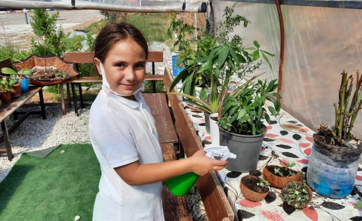 Küresel ısınma ve iklim değişikliğine karşı çözüm arayışına giren Alanyalı öğrenciler ilçede yetişen muzların gövdelerindeki suyu kullanarak bitkilere su sağlayabilecekleri bir proje hazırladı.