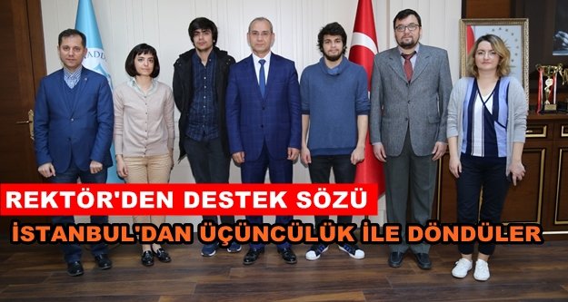 İnternet üzerinden takımlı oynanan oyunları (e-spor) bir araya getirmeyi amaçlayan çok platformlu uygulama projeleriyle yarışmaya katılan ve üçüncülük ile dönen öğrencileri, Bilgisayar Mühendisliği Bölüm Hocaları ile birlikte makamında kabul eden ALKÜ Rektörü Prof. Dr. Ahmet Pınarbaşı öğrencilerini ele ettikleri başarılarından dolayı tebrik etti.