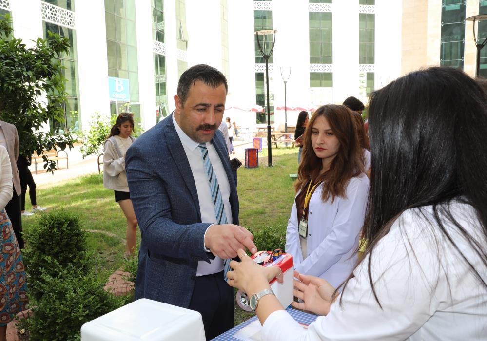 Alanya Alaaddin Keykubat Üniversitesi (ALKÜ) Eğitim Fakültesi Matematik ve Fen Bilimleri Eğitimi Bölümü, Fen Bilgisi ve İlköğretim Matematik Öğretmenliği Ana Bilim Dalı 3’üncü sınıf öğrencileri tarafından hazırlanan “Fen ve Matematik Sokağı”nın açılışı gerçekleştirildi. Fen Matematik Sokağı’nın açılışına, ALKÜ Rektörü Prof. Dr. Ekrem Kalan, Rektör Yardımcıları Prof. Dr. Özgür Kasım Aydemir ve Prof. Dr. Can Tansel Tuğçu’nın yanı sıra fakülte dekanları, akademisyenler ve öğrenciler katıldı. Açılışta, Eğitim Fakültesinin insan yetiştiren önemli bir misyonu olduğunu ifade eden ALKÜ Rektörü Prof. Dr. Ekrem Kalan, “Fakültemizin, öğretmenlerimizin yetişmesinde önemli bir fonksiyonu bulunmaktadır. Bugün de bu çerçevede ‘Fen ve Matematik Sokağı’nın açılışını hocalarımızla hep birlikte yapıyoruz. Burada yapılacak çalışmalarla öğretmenlerimizin daha nitelikli bir şekilde yetişmesinde rol model oynayacak bir projeyi de hayata geçirmiş olacağız. Bu duygu ve düşüncelerle emeği geçen herkese teşekkürlerimi sunarken bundan sonraki süreçte de katkılarının artarak devam etmesini beklediğimizi ifade etmek istiyorum. Üniversitemiz ve öğrencilerimiz için, ülkemiz için hayırlı olmasını dilerim” dedi. Açılışın ardından Rektör Prof. Dr. Ekrem Kalan, ortaokul öğrencilerinin bilime ve bilim insanlarına yönelik farkındalıklarını artırmak, üniversite ortamının tanıtımı yapmak, bilim insanları ile iletişim kurmalarını sağlamak, fen ve matematik konularına yönelik ilgilerini çekmek ve ilgi çekici projelerle bu dersleri öğrencilere sevdirmek için hazırlanan sokaktaki stantları tek tek gezerek, projeler hakkında bilgi aldı.