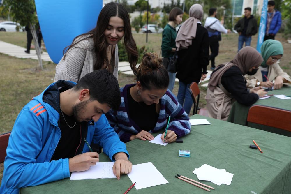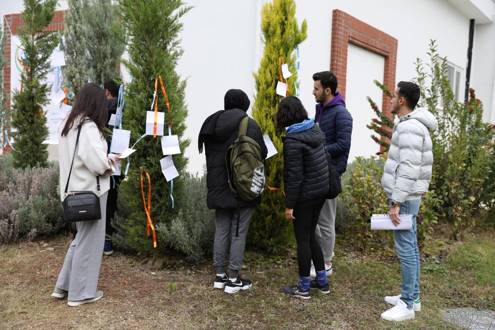 Alanya Alaaddin Keykubat Üniversitesi Kestel Yerleşkesinde 3 Aralık Dünya Engelliler Günü kapsamında farkındalık oluşturmak amacıyla ALKÜ Engelli Eğitim ve Rehabilitasyon Uygulama ve Araştırma Merkezi tarafından ‘Zaman Kapsülü Etkinliği’ düzenlendi. ALKÜ Öğrenci Merkezi önünde düzenlenen etkinliğe ALKÜ Rektör Yardımcısı Prof. Dr. Erdoğan Aslan’ın yanı sıra üniversitenin akademik, idari personeli ile öğrencileri katıldı. Etkinliğin akışı içerisinde katılımcılardan 2030 yılında engelsiz daha güzel bir dünyayı nasıl hayal ettiklerini anlatan bir sayfalık not hazırlanmaları istedi. Hazırlanan notlar daha sonra belirlenen ağaçlara asıldı.