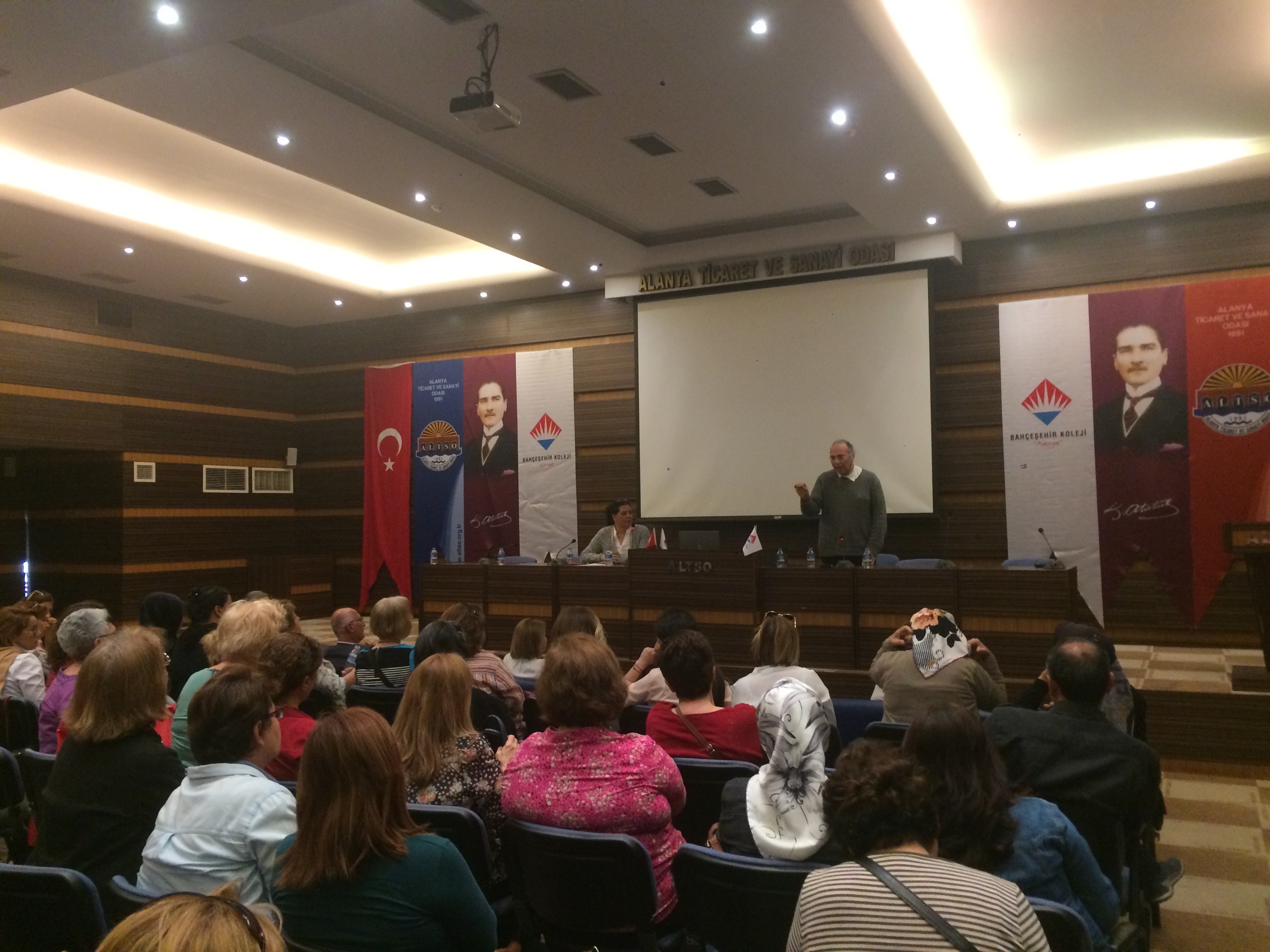 Seminer sonunda katılımcıların sorularına içtenlikle ve özenle yanıtlayan Sayın Yavuz Dizdar ve Sayın Pınar Kaftancıoğlu, Özel Bahçeşehir Alanya Okulları Kurucusu Sayın Burcu Baba ve Bahçeşehir Alanya Okul Aile Birliği Başkanı Sayın Gaye Aktay’dan sertifikalarını aldılar.