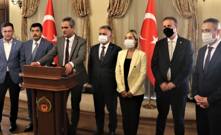 Antalya İl Milli Eğitim Değerlendirme Toplantısı, Milli Eğitim Bakanı Mahmut Özer’in katılımı ile Antalya Valiliği’nde gerçekleştirildi. Toplantı sonrası basın mensuplarına açıklamalarda bulunan Bakan Özer, “Antalya’da yüz yüze eğitime ara verilen sınıf sayımız çok az seviyede. Tüm Türkiye’de süreç kontrollü bir şekilde devam ediyor. Yüz yüze eğitime ara veren sınıflarımız oluyor. Türkiye’deki vaka sayısının seyrine göre yüz yüze eğitime ara veren sınıf sayımız artıyor. 14 gün sonra bu sayı azalıyor. Tekrar yüz yüze eğitime devam ediyor. Vaka sayısına göre veriler değişiyor. Ama okullarımız açık bir şekilde yüz yüze eğitim vermeye devam ediyor. Tüm bu veriler toplumda şuanda en güvenli yerlerin okullar olduğunu bize gösteriyor” dedi.