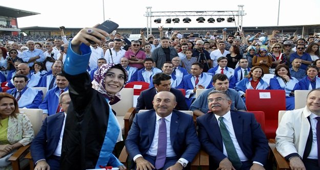 Dışişleri Bakanı Mevlüt Çavuşoğlu ve Milli Eğitim Bakanı İsmet Yılmaz, Akdeniz Üniversitesi 2016-2017 eğitim öğretim yılında mezun oğlan 11 bin öğrenci için Akdeniz Üniversitesi Stadı’nda düzenlenen mezuniyet törenine katıldı. Alana öğrencileri ve ailelerini selamlayarak giren iki bakan, mezuniyet sevinci yaşayan öğrencilerle özçekim yaptı. Özellikle Çavuşoğlu’na öğrenciler büyük ilgi gösterdi. Öğrencilerin geçiş töreni ise renkli görüntüler oluşturdu. Öğrencilerden bazılarının Adanademirspor bayrağı taşıdığı, bazı dövizlerde ise, ‘Dursun Özbek istifa’ yazması dikkat çekti.