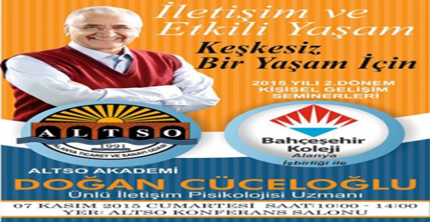 ALTSO Konferans Salonu'nda gerçekleştirilecek seminerde Cüceloğlu, katılımcılara iletişim ve etkili yaşam konularında çeşitli bilgiler aktaracak.