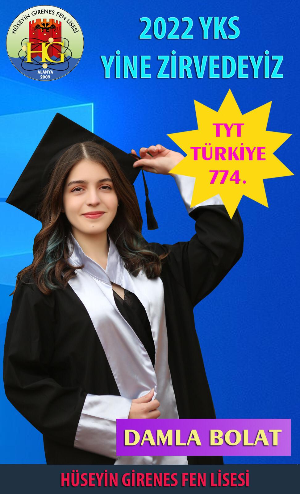TYT puan türünde Türkiye 774. olan Damla Bolat’ı