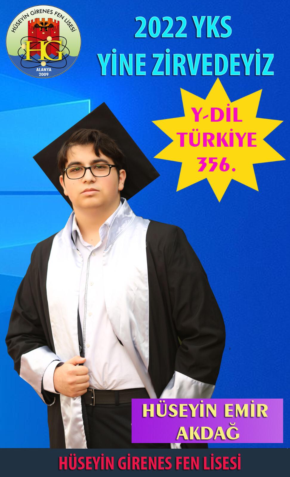 Y-Dil puan türünde Türkiye 356. Alanya 2. olan Hüseyin Emir Akdağ’ı,