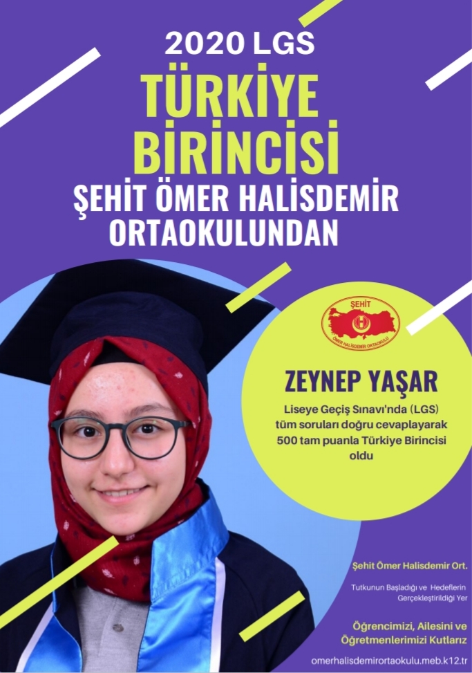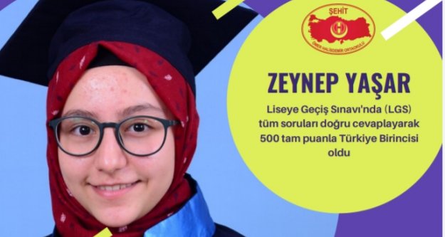 Milli Eğitim Bakanlığınca Liseye Giriş Sınavı (LGS) kapsamında 20 Haziran'da yapılan merkezi sınavın sonuçları "meb.gov.tr" adresinden açıklandı. Alanya Şehit Ömer Halisdemir Ortaokulu öğrencisi Zeynep Yaşar tüm soruları doğru cevaplayarak tam puanla Türkiye birincisi oldu. Başarısıyla Alanya’yı gururlandıran Yaşar öğretmenleri tarafından tebrik edildi. Sınavda 42 farklı ilden 181 öğrenci tam puan aldı. Güncelleme Tarihi: 16 Temmuz 2020, 12:11