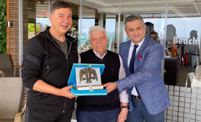 Alanya Keykubat Üniversitesi (ALKÜ) Rafet Kayış Mühendislik Fakültesi'ne katkılarından dolayı yeni atanan Profesör Dr. Erhan Cengiz, Rafet Kayış ve Serhat Kayış'a ziyarette bulunarak plaket takdim etti.