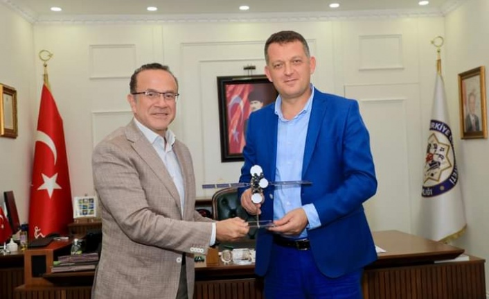 Alanya Üniversitesi Rektörlüğünden TUBİTAK Başkan Yardımcılığına atanan Prof. Dr. Mesut Güner Alanya Kaymakamı Dr. Fatih Ürkmezer’e veda ziyaretinde bulundu.