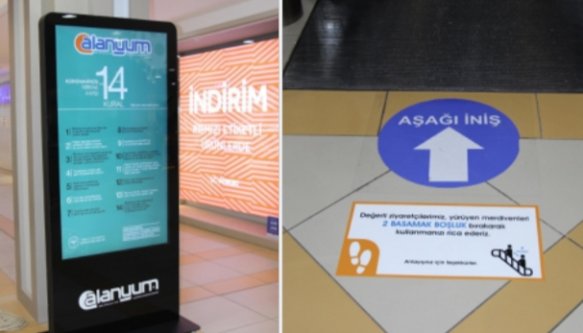 Sosyal mesafe kuralına uygun olarak müşterilerin içeri alındığı AVM’de müşterilerin ateşleri tek tek ölçülüyor. Maskesiz müşterilerinin içeri alınmadığı alışveriş merkezinde 10 metrekareye 1 kişi düşecek şekilde vatandaşlar kontrollü olarak içeri alınıyor. Yönlendirme tabelalarının asılarak vatandaşlara uyulması geren kuralların hatırlatıldığı AVM’de ATM’ler, tuvaletler, yürüyen merdivenler ve daha pek çok yüzey düzenli olarak sık sık dezenfekte ediliyor. Hava perdelerinin kapatılarak, temiz hava girişinin oldukça maksimum düzeyde sağlandığı Alanyum’da, gece temiz hava basan havalandırmaları çalıştırılarak klimalar da kapatılıyor. Güncelleme Tarihi: 12 Mayıs 2020, 17:39