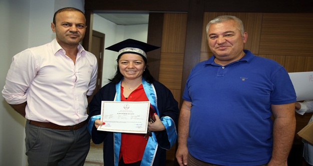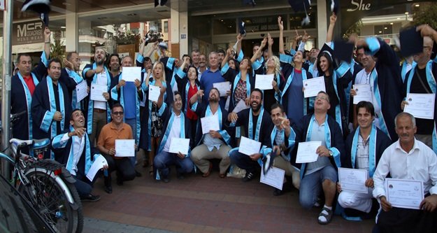 Törende tüm kursiyerlere cübbe ve kep giydirilmesi ise renkli görüntülerin ortaya çıkmasına neden oldu. Belgelerini alan kursiyerler törenin ardından ALTSO Bin ası önünde kep fırlattılar.