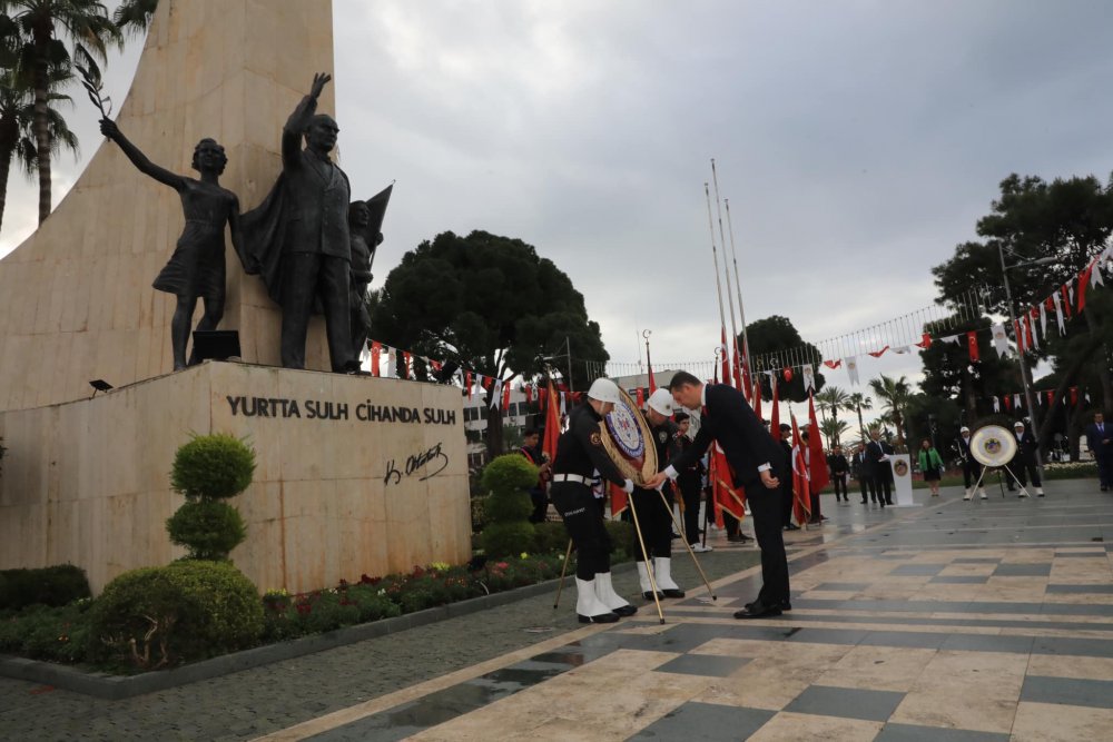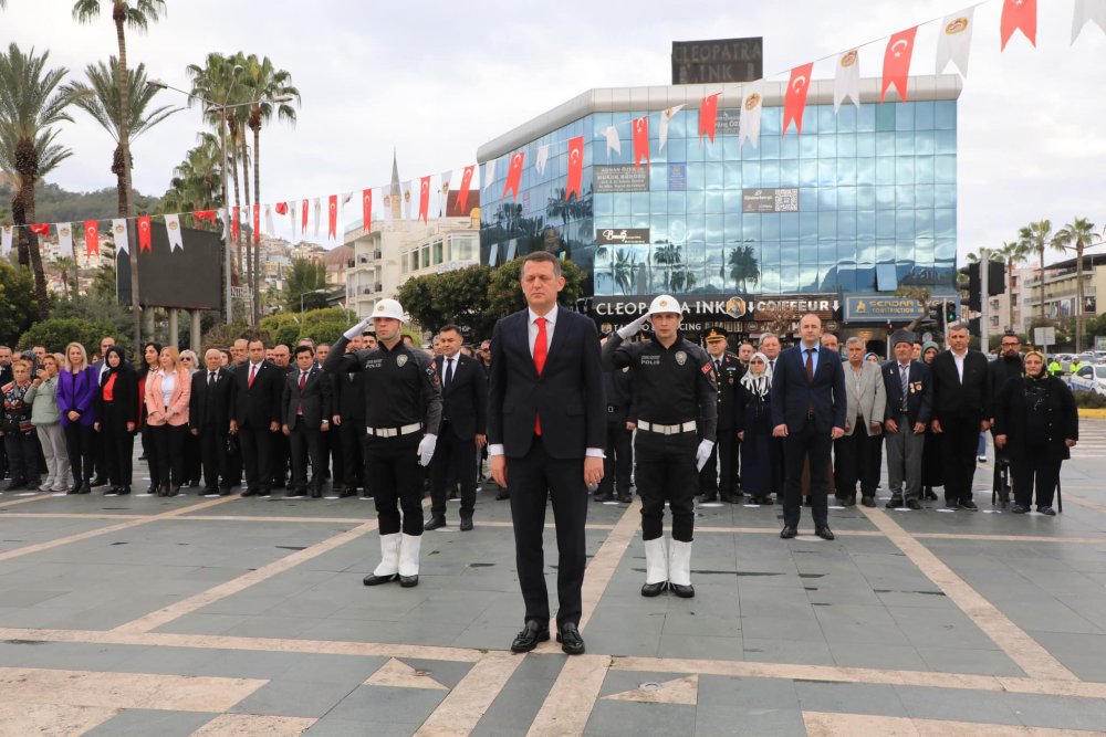 Alanya Atatürk meydanında gerçekleşen tören Kaymakam Ürkmezer ve Alanya Belediye Başkanı Adem Murat Yücel tarafından Kaymakamlık ve Belediye Başkanlığı çelenklerinin Atatürk Anıtına sunulmasıyla başladı. Tören Saygı duruşu ve İstiklal Marşı'nın okunmasıyla sona erdi.