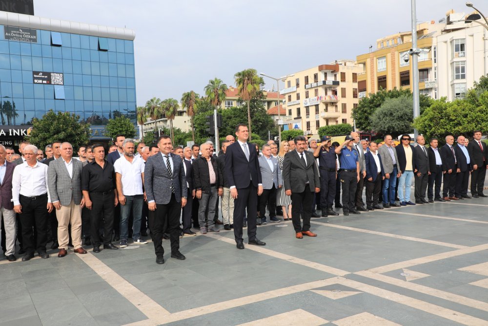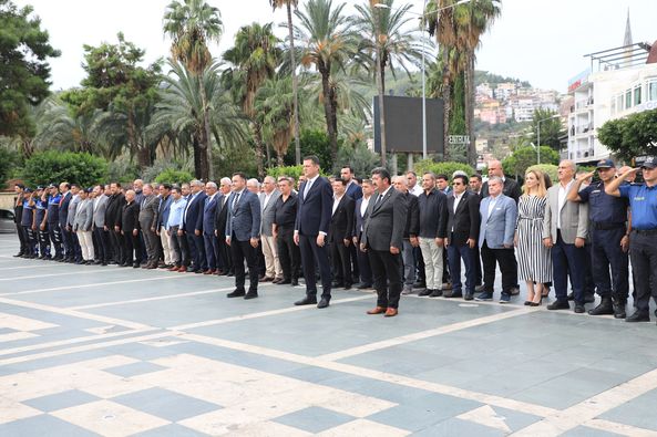 Alanya Atatürk meydanında gerçekleşen törene Alanya Kaymakamı Dr. Fatih Ürkmezer, Belediye Başkanı Adem Murat Yücel, Kurum Amirleri, Siyasi Partiler, Oda Başkanları ve Alanya Mahalle Muhtarları katıldı.