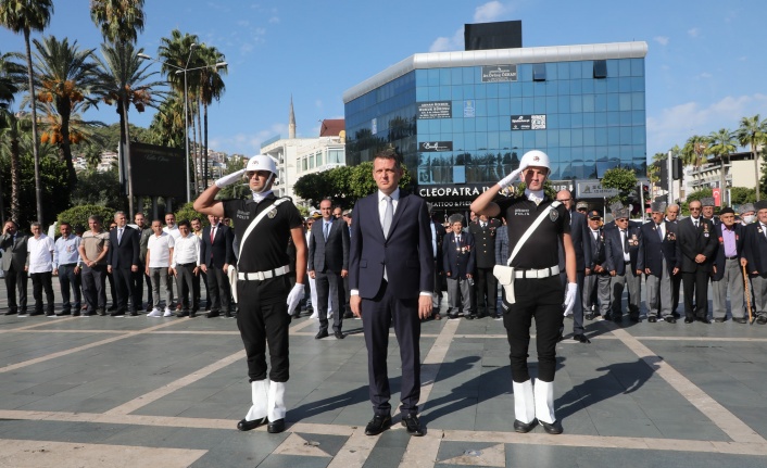 Çelenk sunma ile başlayan törende; Kaymakam Ürkmezer, Başkan Vekili Alaettinoğlu ve Gaziler Derneği Başkanı Abdullah Yılmaz tarafından Atatürk Anıtına çelenk sunuldu. Çelenklerin sunulmasının ardından Saygı duruşu ve İstiklal Marşının okunmasıyla devam eden programda Alanya Muharip Gaziler Derneği Başkanı Kıbrıs Gazisi Abdullah Yılmaz tarafından günün anlam ve önemine ilişkin konuşmanın yapılmasıyla tören sona erdi.
