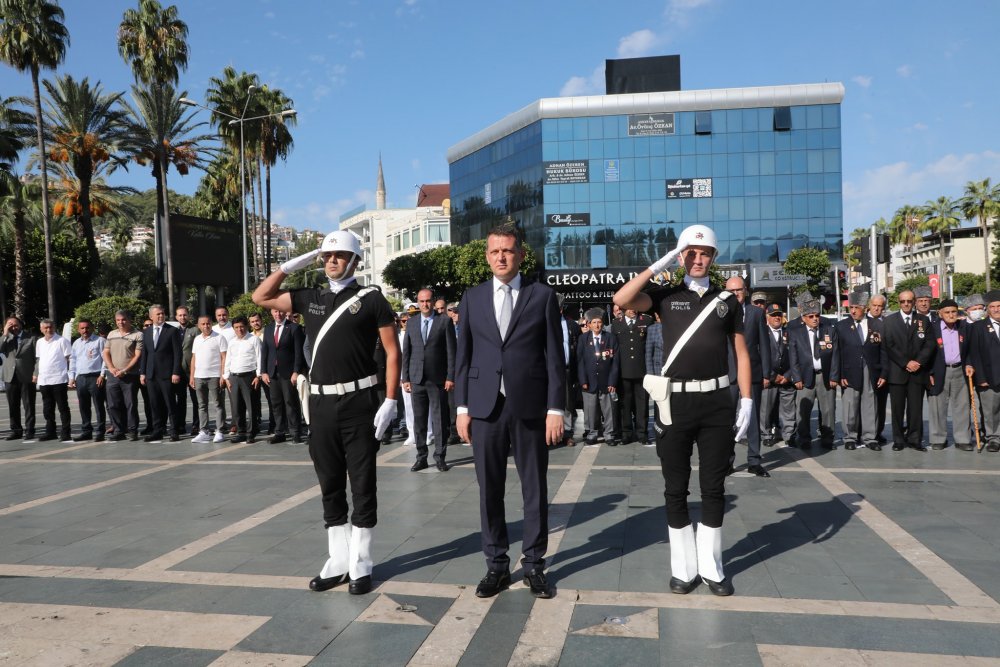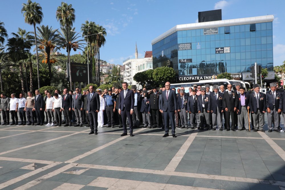 Atatürk Meydanında gerçekleşen törene Alanya Kaymakamı Dr. Fatih Ürkmezer, Alanya Belediye Başkan Vekili Fevzi Alaettinoğlu, Alanya Cumhuriyet Başsavcısı Celal Tekin, ALKÜ Rektörü Prof. Dr. Kenan Ahmet Türkdoğan, Alanya Üniversitesi Rektörü Prof. Dr. Mesut Güner Gazilerimiz, Kurum Amirleri, Siyasi Partiler, Oda Başkanları, STK’lar ve vatandaşlar katıldı.