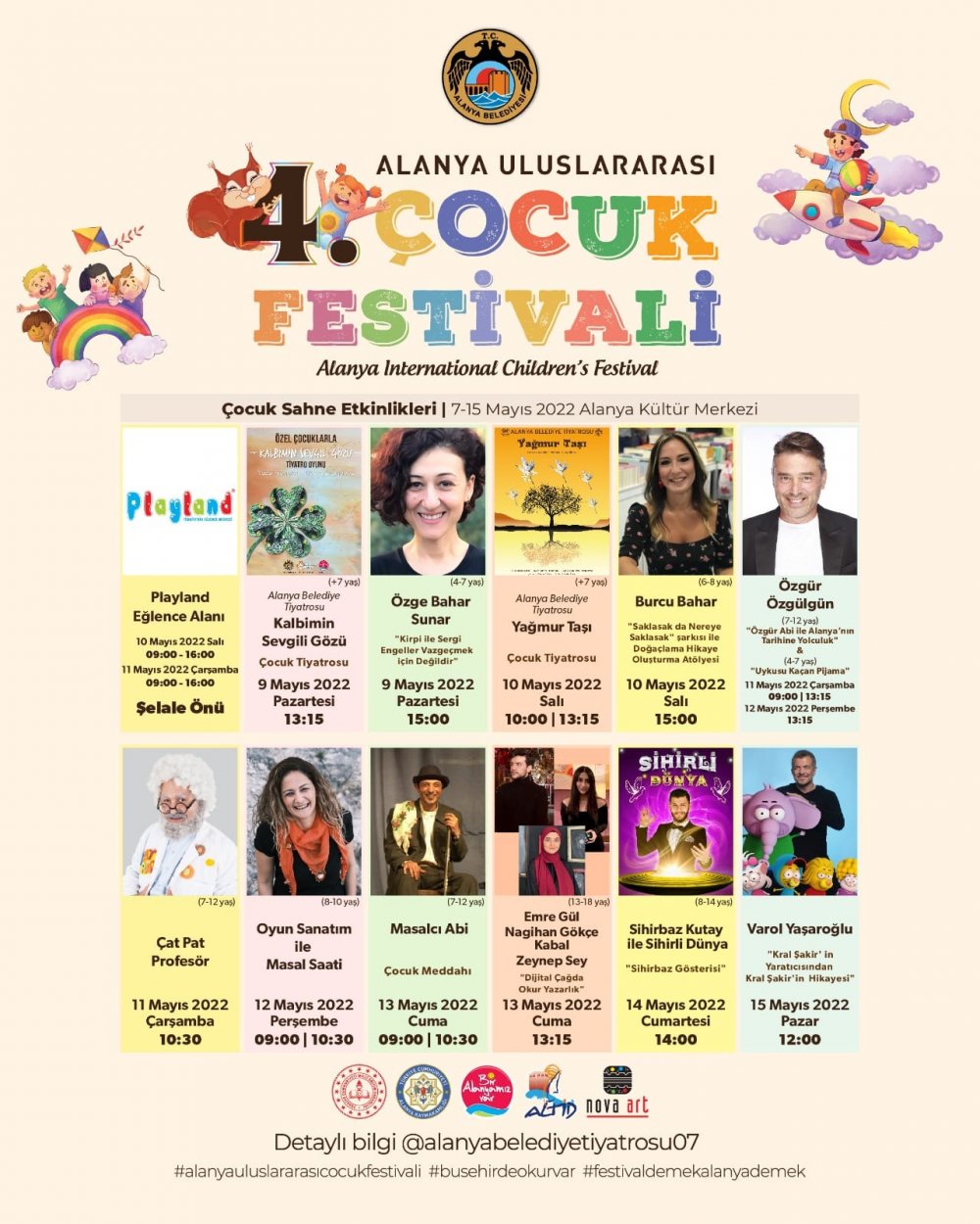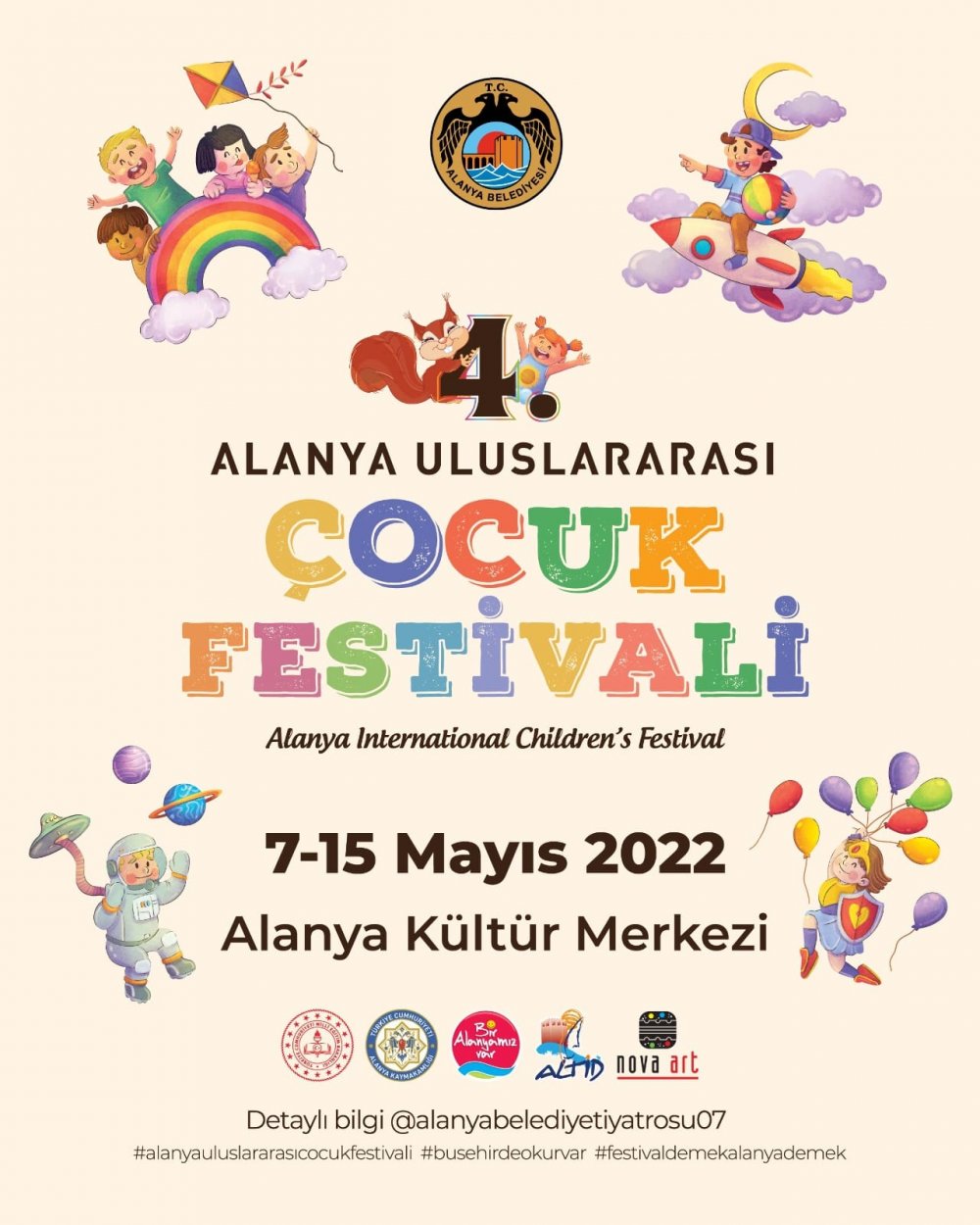 Alanya Belediyesi'nin resmi sosyal medya hesabından yapılan açıklamada şu ifadelere yer verildi: 'Festival kapsamında çocuk kitap fuarı, çocuk etkinlikleri, yazarlar ile buluşma, söyleşiler, çocuk tiyatroları, kukla performansları, sahne gösterileri, geleneksel çocuk oyunları, çeşitli yarışmalar sizleri bekliyor. Tüm Alanya halkını 7-15 Mayıs tarihleri arasında yapılacak olan 4. Alanya Uluslararası Çocuk Festivali'ne bekliyoruz...'