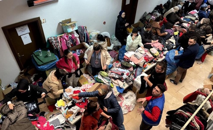 Yüzlerce depremzedenin otellere yerleştirilmesi için koordinasyon merkezinde hummalı bir çalışma yapılırken, merkezin hemen yan tarafında ise aşevi çadırları kuruldu. Depremzedeler işlemleri yapılırken hem yemeklerini yiyor, hem de bekleme salonunda çaylarını içerek işlemlerin bitmesini bekliyor.