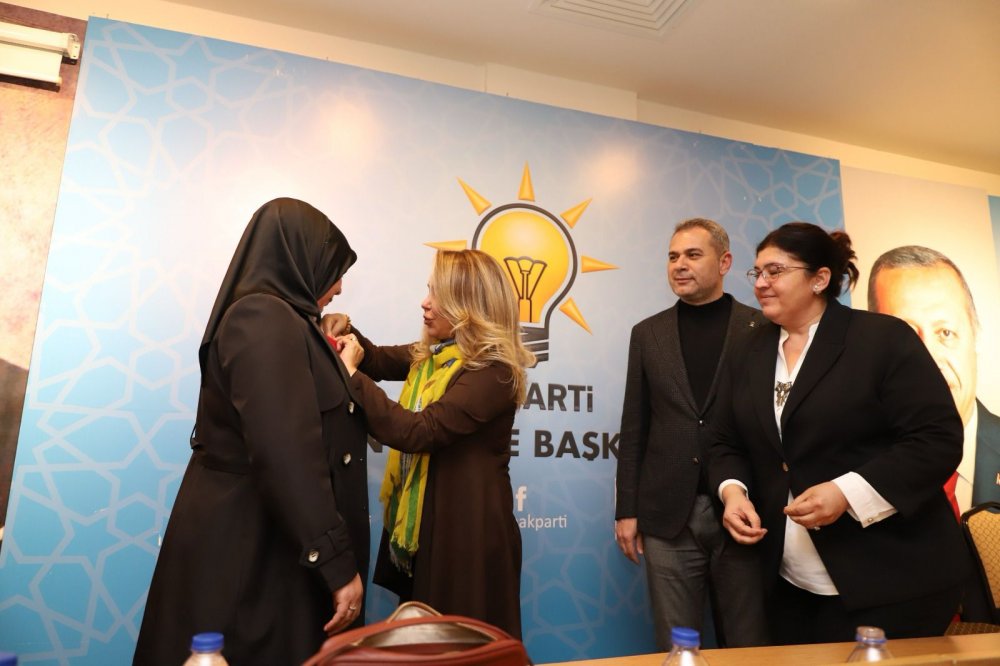 İlçe Teşkilatında gerçekleşen toplantı sonrası İlçe Kadın Kolları Başkanı Fatma Anılgan başkanlığında yürütülen yeni üye çalışmaları kapsamında 157 yeni üyenin bugün rozet takma töreni de gerçekleşti. Yeni üyelere rozetleri önceki dönem Milletvekili Gökçen Özdoğan Enç, İlçe Başkanı Mehmet Şarani Tavlı ve İlçe Kadın Kolları Başkanı Fatma Anılgan taktı.